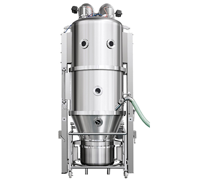 立式沸騰制粒干燥機(jī)的原理是物料粉末粒子,在原料容器(流化床)中呈環(huán)形流化狀態(tài),受到經(jīng)過凈化后的加熱空氣預(yù)熱和混合,將粘合劑溶液霧化噴入,使若干粒子聚集成含有粘合劑的團(tuán)粒,由于熱空氣對物料的不斷干燥,使團(tuán)粒中水分蒸發(fā),粘合劑凝固