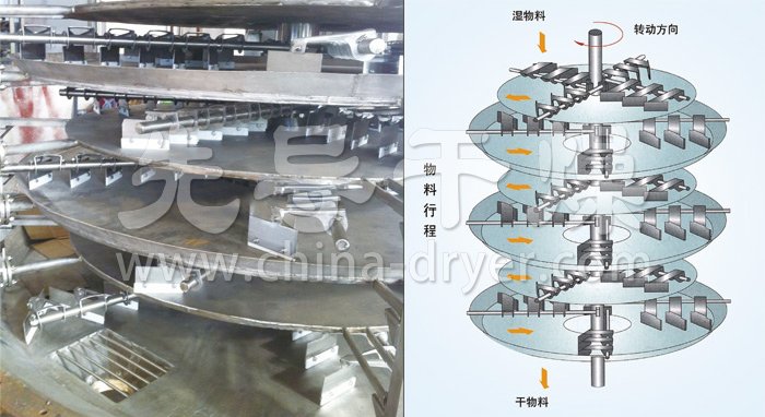 通過調(diào)整料層厚度、主軸轉(zhuǎn)速、耙臂數(shù)量、耙葉型式和尺寸使干燥過程達(dá)到更佳;